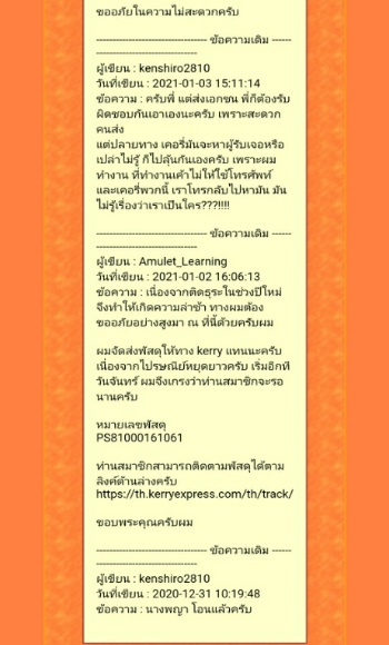 ผม จัดส่งพัสดุวันที่ 2มค.64 ผ่านขนส่งเอกชน(kerry)ด้วยเจตนาที่ว่าไม่อยากให้ลูกค้ารอพัสดุนาน