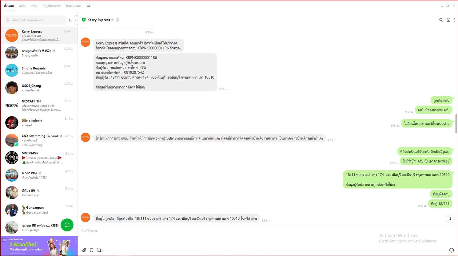 เมื่อตามkerry ผ่านเว็บช่วยเหลือติดตาม พบว่าในระบบที่อยู่ผู้ส่งบ้านเลขที่ไม่ตรง จาก 18/111 เป็น 18/11
