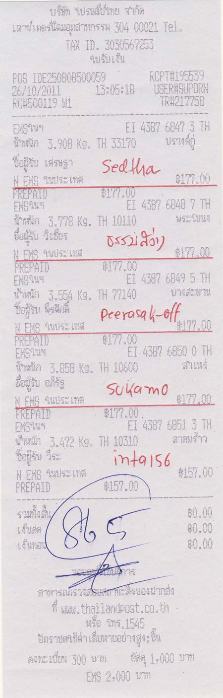 ยกเว้นของพี่ looknam1 ที่อยู่ปทุมธานี น้ำท่วม เจ้าตัวบอกว่าให้เก็บไว้ที่ผมก่อน จึงยังไม่ได้จัดส่งไป