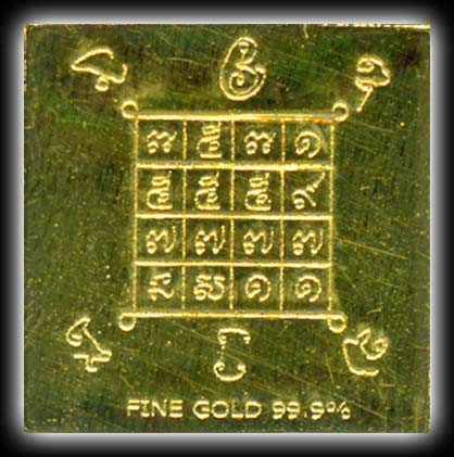 ขอแจ้งให้ทราบก่อนนะครับว่ารายละเอียดบน ตะกรุดขณะนี้ยังไม่เต็ม 100% นะครับ เนื่องจากรายละเอียดยันต์รับทรัพย์นั้นเป็นตารางหลายช่องและค่อนข้างมาก (มากสำหรับพื้นที่เล็กๆ บนแผ่นตะกรุดนี้) ทำให้ยังไม่สามารถลงรายละเอียด "fine gold 99.99% by pranda" ได้ครบ จึงลงได้แค่ "fine gold 99.9%" มาให้ชมกันก่อน ตัวจริงนั้นจะต้องปรับฟอนต์ให้เล็กลงมากกว่านี้ครับ