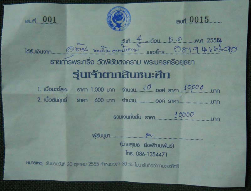 ท่านใดสนใจ ก็ไปจองที่วัดได้ครับ