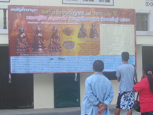 และผู้ที่สนใจอ่านป้ายประชาสัมพันธ์หน้ากุฏิหลวงปู่สินก่อนเวลาเปิดจอง |