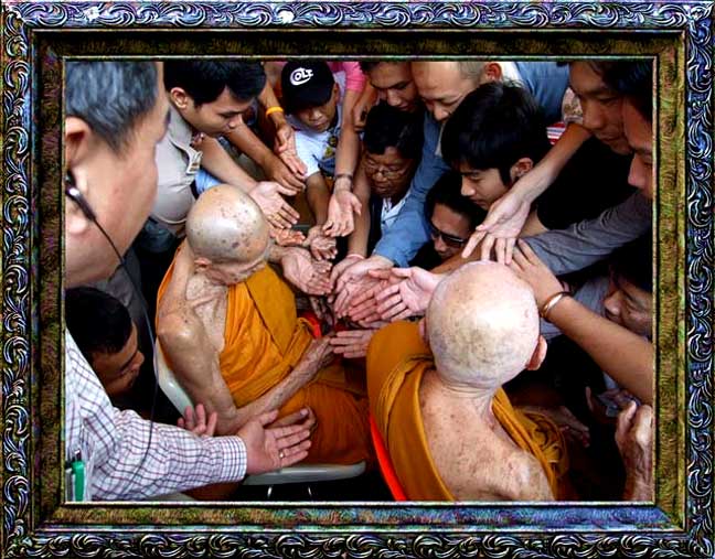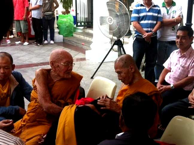 สุดยอดพระเกจิ ผู้ยิ่งด้วยเมตตาบารมี "หลวงปู่หริ อคฺคสิริ"และ หลวงปู่เกลี้ยง มนุญโญได้พบทั้งสองท่านทักทายสนทนากันอย่างสนิทสนมกัน ยิ้มแย้ม ดั่งเพื่อนที่ไม่ได้พบกันมานาน และท่านทั้งสองได้นำเครื่องรางของขลังมาแจกลูกศิษย์ ท่านทั้งสองมีเมตตามากครับ คนแน่นแย่งกันท่านก็ยังแจกด้วยใบหน้าที่ยิ้มแย้มมีเมตตา น่าเค่ารพเลื่อมใสมากครับ |