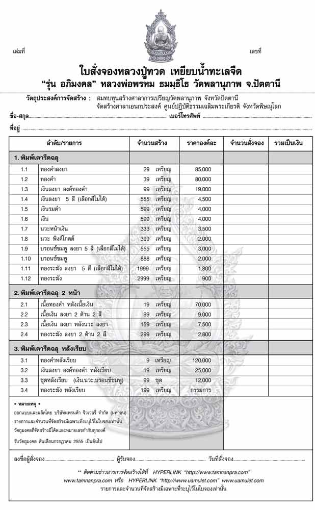 โดยจะมีเนื้อพิเศษเปิดจองที่เวปแห่งนี้ หมดแล้ว หมดเลย จำนวนสร้างน้อยประมาณ 299 องค์