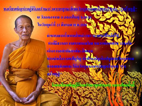 ขอเรียนเชิญท่านผู้มีจิตศรัทธาร่วมงานพุทธาภิเษกวัตถุมงคลเหรียญเจริญพร รุ่นร้างกุฏิ