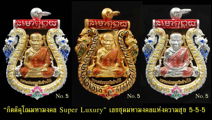 1. เนื้อทองคำลงยาเต็มสูตรฝังเพชร 5 เม็ด หมายเลข "5" สร้างเพียง 9 องค์เท่านั้น