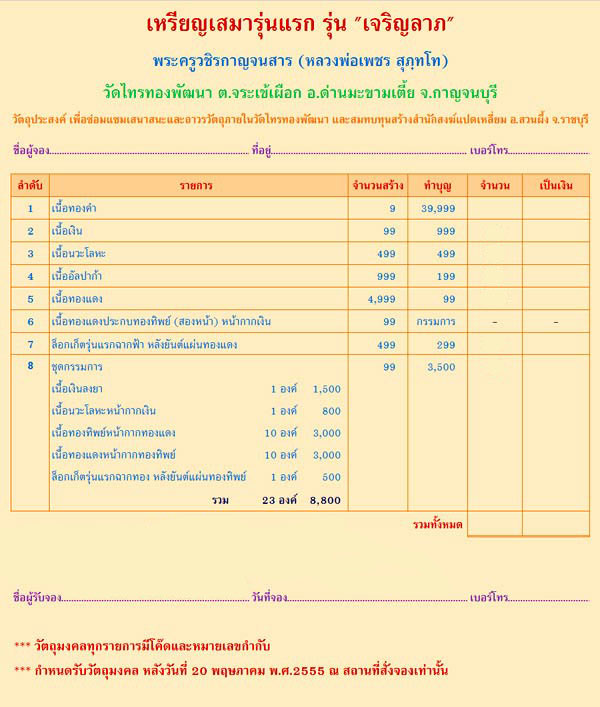 - ท่านที่สั่งจองชุดกรรมการ 1 ชุด จะได้รับ เหรียญเสมาจิ๋วรุ่นแรก 5 เหรียญ !!! ฟรี !!!