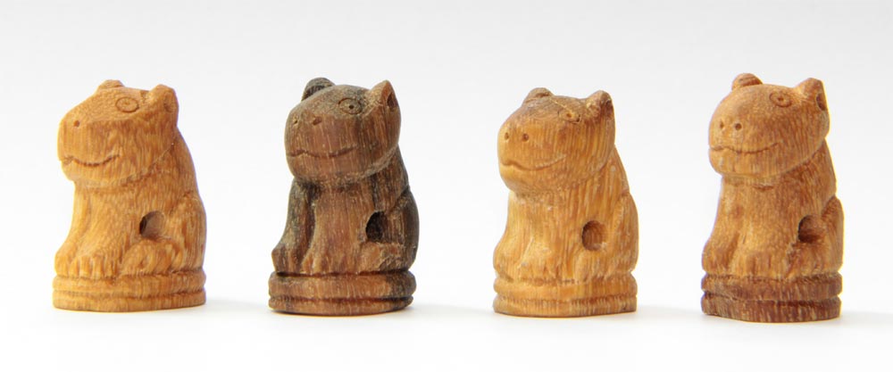 ผมลองเอามาเรียงกันแล้วถ่ายรูปให้ดู 4 ตัว หยิบแบบสุ่มๆ ขี้นมาผมว่าฝีมือช่างคนนี้มือนิ่งและแม่นมากจริงๆ เพราะฉะนั้นเสือทั้ง 4 ตัวจึงออกมามีขนาดและความเหมือนคล้ายกันมากๆ เหมือนกับคลอดออกมาจากคอกเดียวกันเลย!