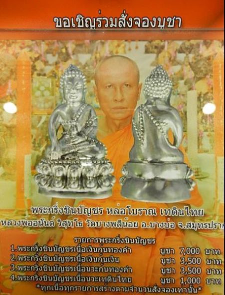 ขอเชิญสั่งจอง พระกริ่งชินบัญชร(เทดินไท)หลวงพ่ออนันต์ วิสุทโธ วัดบางพลีน้อย เนื่องจากในวันที่7ก.ค.2555 ตรงกับวันเสาร์ เป็นวันคล้ายวันเกิดหลวงพ่อได้มีการคำริสร้างพระกริ่งชินบัญชรเพื่อให้ลูกศิษย์และประชาชนนำไปใช้ ทางวัดจะหล่อเทดินไทแบบโบราณ หลวงพ่อจะทำพิธีเททองหล่อที่วัดในวันที่7ก.ค.2555 เททองหล่อวันนั้น รับพระกริ่งตอนเย็นวันนั้นเลยคับหลวงพ่อเน้นให้ลูกศิษย์และประชาชนนำไปใช้แล้เวให้เกิดผล