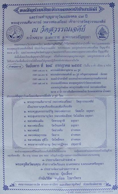 วาระที่ ๒ นำเข้าพิธีพุทธาภิเษกวันที่ ๒๔ กรกฎาคม ๒๕๕๕ โดยมีพระเกจิจำนวน ๙ รูปร่วมปลุกเษก