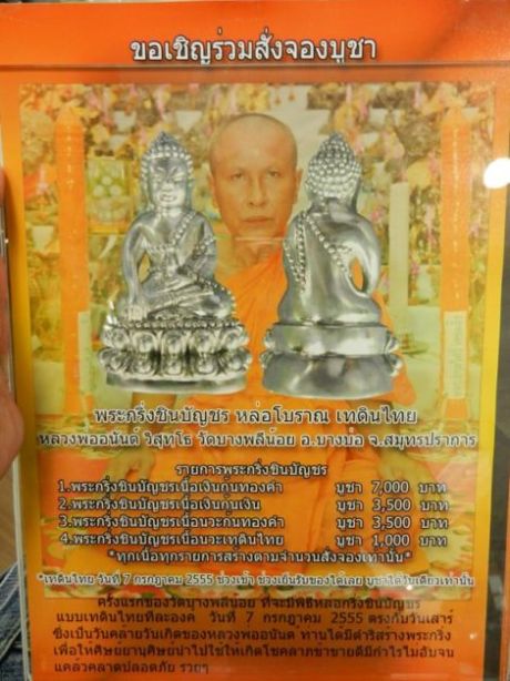 ขอเชิญสั่งจอง พระกริ่งชินบัญชร(เทดินไท)หลวงพ่ออนันต์ วิสุทโธ วัดบางพลีน้อย เนื่องจากในวันที่7ก.ค.2555 ตรงกับวันเสาร์ เป็นวันคล้ายวันเกิดหลวงพ่อได้มีการคำริสร้างพระกริ่งชินบัญชรเพื่อให้ลูกศิษย์และประชาชนนำไปใช้ ทางวัดจะหล่อเทดินไทแบบโบราณ หลวงพ่อจะทำพิธีเททองหล่อที่วัดในวันที่7ก.ค.2555 เททองหล่อวันนั้น รับพระกริ่งตอนเย็นวันนั้นเลยคับหลวงพ่อเน้นให้ลูกศิษย์และประชาชนนำไปใช้แล้เวให้เกิดผล