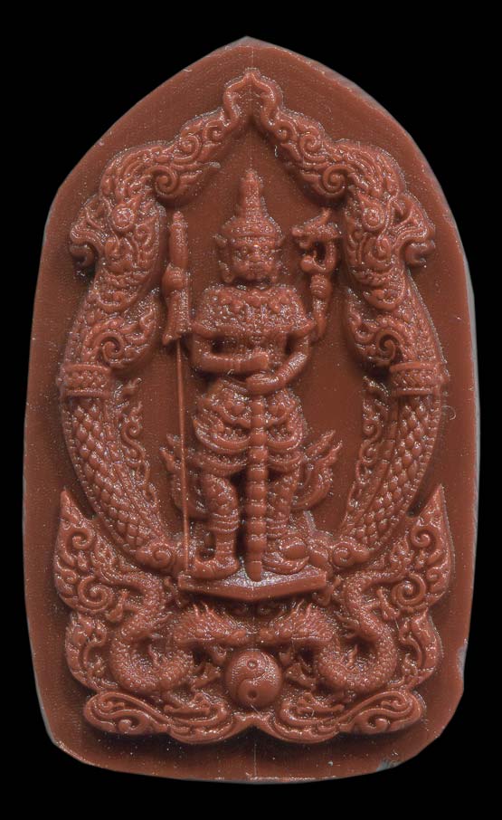 ขอแจ้งก่อนว่าพิมพ์แว็กซ์นี้อาจจะแกะองค์ท้าวเวสสุวรรณได้ไม่ชัดเจนนักเนื่องจากเป็นพิมพ์ที่ผ่านการขึ้นพิมพ์ด้วยคอมพิวเตอร์ระบบ CNC หัวเข็มที่ใช้ในการฝนพิมพ์แว็กซ์ออกมานี้จะมีขนาดของเข็มที่ไม่เล็กที่สุดแต่ก็ทำให้พอมองกับรูปแบบคร่าวๆ กันได้ (อย่าลืมนะครับว่าเหรียญจริงนั้นองค์ท้าวเวสสุวรรณตรีพระเพลานั้นจะเล็กมาก ความสูงประมาณ 2 ซม.เท่านั้น เล็กกว่ารูปหล่อลอยองค์ซึ่งสูง 3.8 ซม. หรือประมาณครึ่งหนึ่งเท่านั้น)
