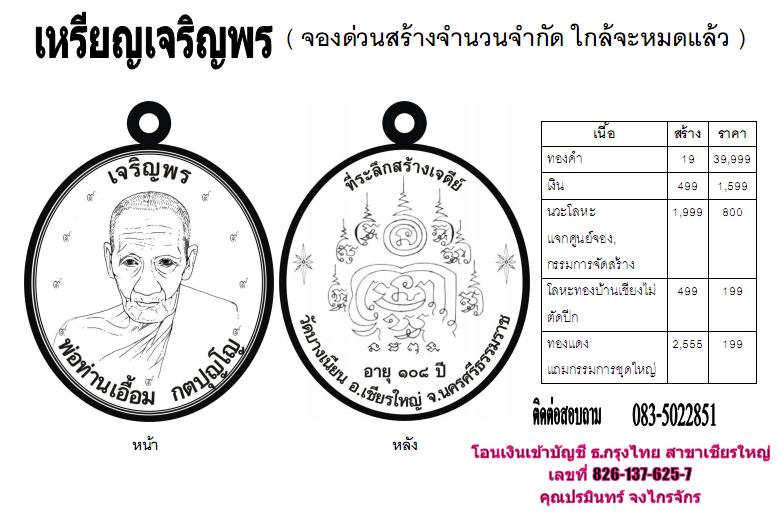เจริญพร เนื้อทองแดง ยอดสร้าง 2555 เหรียญ