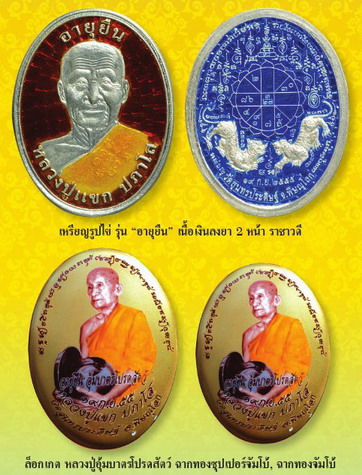 เนื้อเงินลงยาสองหน้า น้ำเงินหลังแดง สร้าง 108 เหรียญ จอง 3,000 บาท