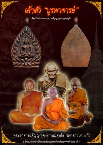 เหรียญเจ้าสัว " บูรพาจารย์ " จัดสร้างโดย พระอาจารย์สัญญา(คง) วัดกลางบางแก้ว จ.นครปฐม รายได้สมทบทุนสร้างโบสถ์ วัดสี่กั๊กราษฎร์บำรุง จ.กาญจณบุรี