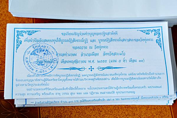 แจ้งข่าวนะครับ จากที่กำหนดว่าจะรับวัตถุมงคลช่วง กลางเดือน พย.55 นั้น พอดีได้เลื่อนวันทอดกฐินจากปลายเดือน พย.เข้ามา วันที่ 4 พย.55 ร่วมกับอีกกองนึง ทางผมเลยต้องรีบให้เสร็จไวๆจะได้แจกจ่ายซองกฐินในต้นเดือนนี้เพื่อนำรายได้ไปสมทบ จึงทำให้ได้รับวัตถุมงคลกันไวครับ  |