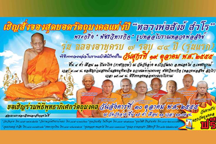 เชิญร่วมพิธีเททองหล่อพระหลวงพ่อสังข์ สํวโร ณ วัดวังอ่าง ต.บัววัฒนา อ.หนองไผ่ จ.เพชรบูรณ์