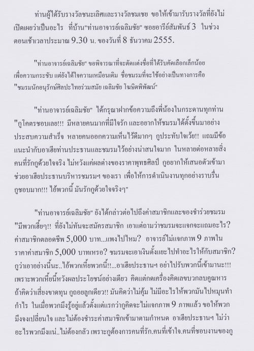 ปล. ขออนุญาตท่านอาจารย์เฉลิมชัย และท่านประธานชมรมฯ ในการนำสาล์นมาประชาสัมพันธ์ด้วยครับ...