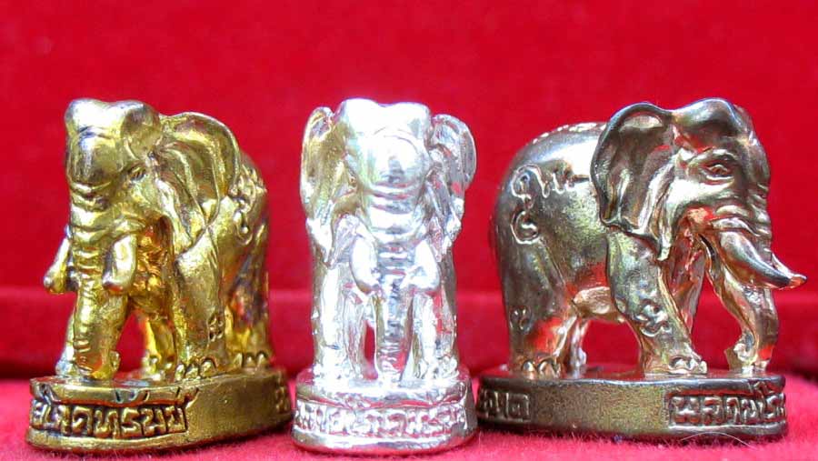 ขอบคุณพี่ๆเพื่อนๆที่สนใจและสอบถามกันมาหลายท่านเกี่ยวกับเรื่องของพลายโภคทรัพย์ของหลวงพ่อแถมครับ ... ช้างๆๆๆ อีกหนึ่งในสัตว์ตระกูลเลี้ยงลูกด้วยนมที่ผูกพันกับพวกเราชาวไทยมานานนับร้อยๆปี ด้วยว่าสมัยโบราณเป็นสัตว์คู่บุญบารมีกับพระมหากษัตริย์ของไทยเราถึงกับมีการขนานนามกันว่า พระเจ้าช้างเผือก ก่อนที่จะมีธงไตรรงค์ที่เราใช้กันอยู่ในปัจจุบันก็เคยมีการนำช้างเป็นสัญญลักษณ์กันมาแล้ว แม้แต่เครื่องราชอิสริยาภรณ์ก็ยังใช้สัญญลักษณ์เป็นรูปช้าง กระทู้นี้ก็จะเป็นเรื่องของช้างพลายโภคทรัพย์ของหลวงพ่อแถม วัดช้างแทงกระจาด เพชรบุรี ที่ได้จัดสร้างพร้อมกับเหรียญโภคทรัพย์ พุทธคุณเน้นเกี่ยวกับเรื่องทรัพย์สินเงินทอง หรือจะเอาเคล็ดเกี่ยวกับเรื่องสุขภาพและอายุยืนก็ได้ครับ มีหลากหลายเนื้อให้เลือกใช้ ตั้งแต่เนื้อล่างสุดทองแดง จนถึงทองคำที่มีน้ำหนักประมาณ 35 กรัมราคาจะค่อนข้างสูงแต่จะมีโขลงช้างที่รวมเอาไว้ทุกเนื้อในชุดนี้ทั้งหมด 113 เชือก ..จะลองเลี้ยงเอาไว้ห้อยกล้องส่องพระหรือกุญแจรถ มอบเป็นของขวัญให้กับคนที่เรารัก ได้หมดครับ ..ชมตามภาพบางเนื้อเลยครับ  |