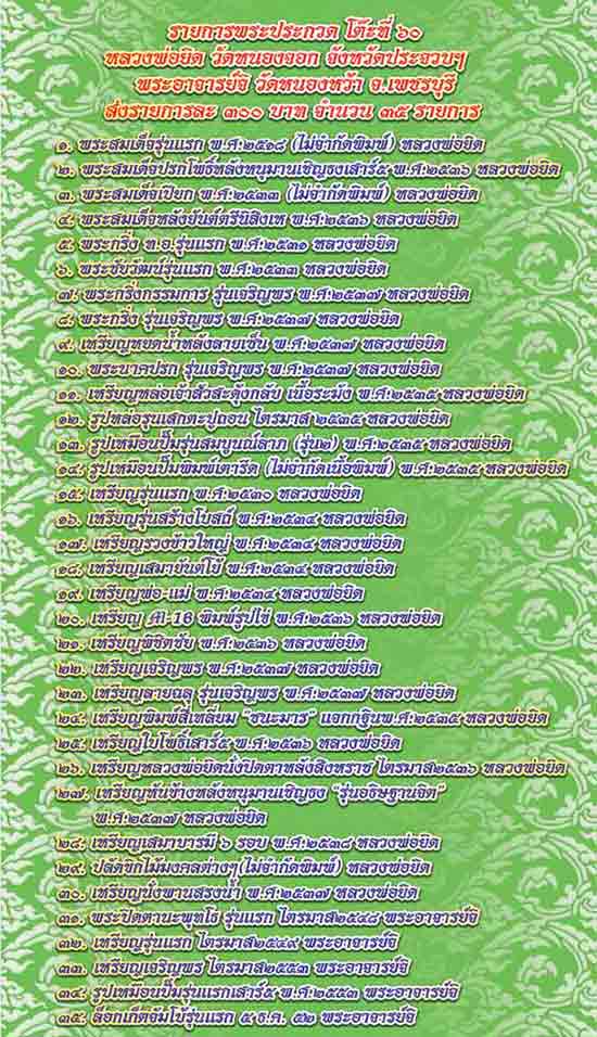 มีรายการประกวดพระเครื่องของสาย "พระอาจารย์จิ วัดหนองหว้า จ.เพชรบุรี" จำนวน 5 รายการครับ