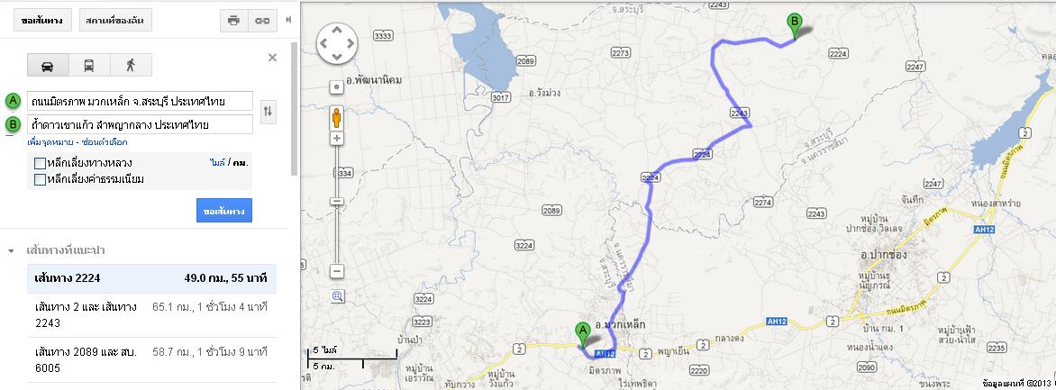 เส้นทางการขับรถจาก มวกเหล็ก ไปยัง ถ้ำดาวเขาแก้ว
