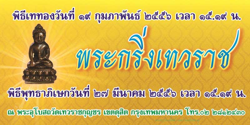 ¾ÃСÃÔè§à·ÇÃÒª ¨Ñ´¾Ô¸Õ෷ͧËÅèÍâºÃÒ³ÂéÍ¹ÂØ¤ã¹Ä¡Éì·Ø¡Í§¤ì àÁ×èÍÇѹ·Õè 19 ¡.¾. 2556 àÇÅÒ 15.19-17.49 ¹. ³ Á³±Å¾Ô¸ÕÀÒÂ㹡Óá¾§á¡éǾÃÐÍØâºÊ¶ÇÑ´à·ÇÃÒª¡ØªÃ áÅоԸվط¸ÒÀÔàÉ¡¾ÃСÃÔè§à·ÇÃÒªàÁ×èÍÇѹ·Õè 27 ÁÕ.¤. 2556 àÇÅÒ 15.19-17.49 ¹. â´ÂÁÕ¾ÃÐʧ¦ì·Ã§ÊÁ³ÈÑ¡´Ôì ÁÒà¨ÃÔ¾Ãоط¸Á¹µì º·¸ÑÁÁ¨Ñ¡¡Ñ»»Çѵ¹Êٵà º·¸ªÑ¤¤Êٵà º·ÁËÒÊÁÑÂÊٵà ¾ÃÐࡨÔÍÒ¨ÒÃÂì¹Ñ觻á͸Ôɰҹ¨Ôµ ¾ÃÐʧ¦ì¨µØÃÇÃäÊÇ´¤Ò¶Ò¾Ø·¸ÒÀÔàÉ¡ »ÃоÃÁ¹éÓ¾Ãоط¸Á¹µì â»Ã´͡äÁé àÇÕ¹à·Õ¹ÊÁâÀª¾ÃСÃÔè§à·ÇÃÒª