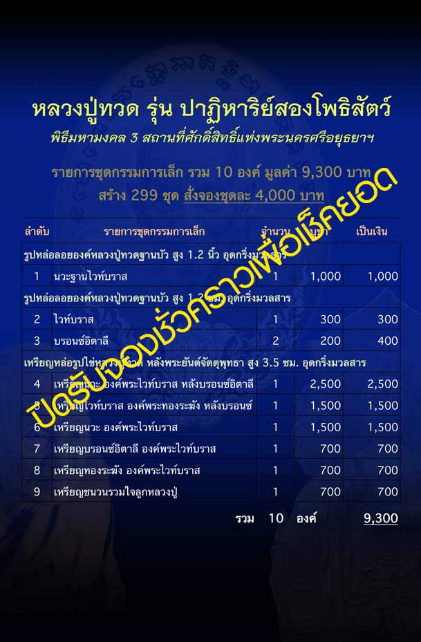 เหตุผลง่ายๆครับ รายการย่อยยังไม่ได้เปิดตัวให้สั่งจองกันเลยแต่เมื่อทุกท่านได้เห็น "แว็กซ์สีน้ำทะเล Blue of the Ocean" ของทั้งเหรียญและลอยองค์แล้วก็คิดว่าหลายๆ ท่านน่าจะ "มั่นใจ" ในการทำงานของผมที่จะต้องทุ่มเทอย่างสุดฝีมือให้ "ผลงานจริง" ออกมาได้ใกล้เคียงกับแว็กซ์สีน้ำทะเลนี้มากที่สุดเท่าที่จะทำได้ครับ