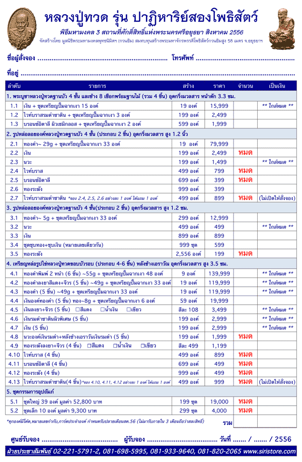 ผมได้ทำใบสั่งจองมาให้ใหม่แล้ว กรุณาใช้ใบสั่งจองนี้เป็นรายการที่สมบูรณ์ครบทุกรายการแล้ว