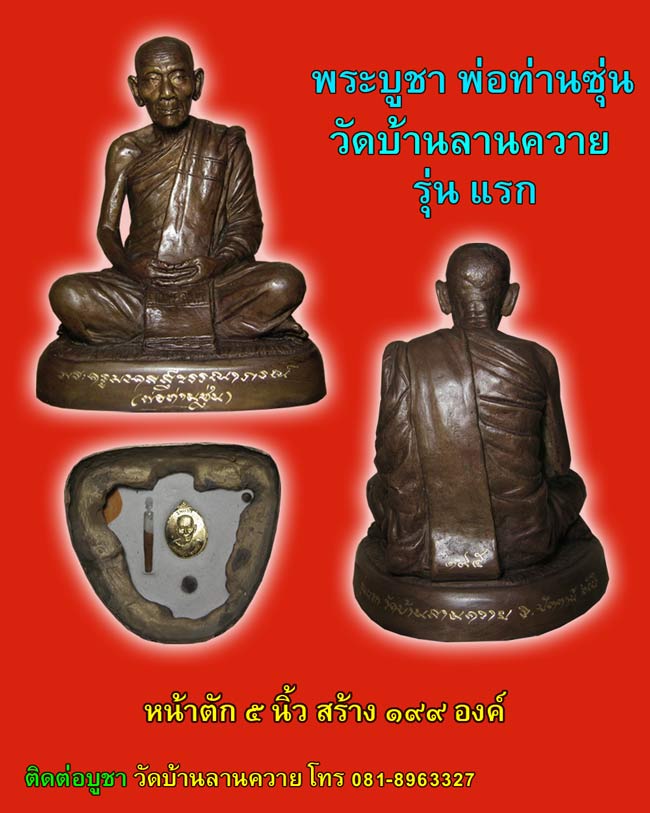 บูชากันได้แล้วครับ...สำหรับพระบูชา รุ่นแรก พ่อท่านซุ่น วัดบ้านลานควาย หน้าตัก ๕ นิ้ว สร้างน้อยเพียง ๑๙๙ องค์เท่านั้นครับ..
