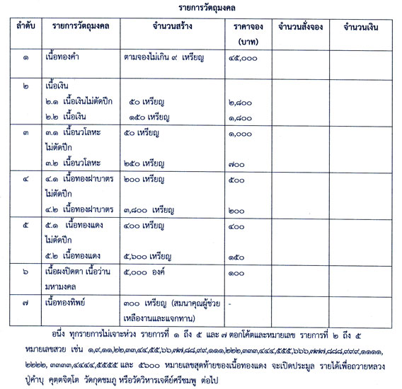 รายการจัดสร้างครับ