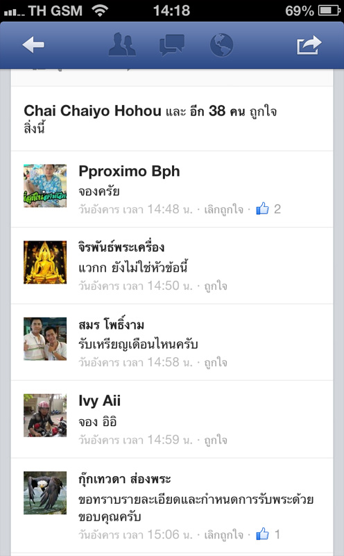 ผมจะเช็คโดยดูลำดับผ่าน i-Phone นะครับ เนื่องจากมันจะเรียงลำดับการโพสต์จองได้อย่างถูกต้องครับ