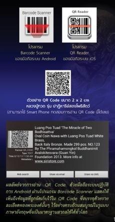 หลวงปู่ทวด รุ่น "ปาฏิหารย์สองโพธิสัตว์" นอกจากการนำเทคนิค และ วัตถุดิบใหม่ๆ เข้ามาใช้ในการผลิตเหรียญ และ รูปหล่อแล้ว อีกสิ่งหนึ่งที่ทันสมัย และ แปลกใหม่มากของวงการพระเครื่องของไทย คือ "ระบบ QR Code"