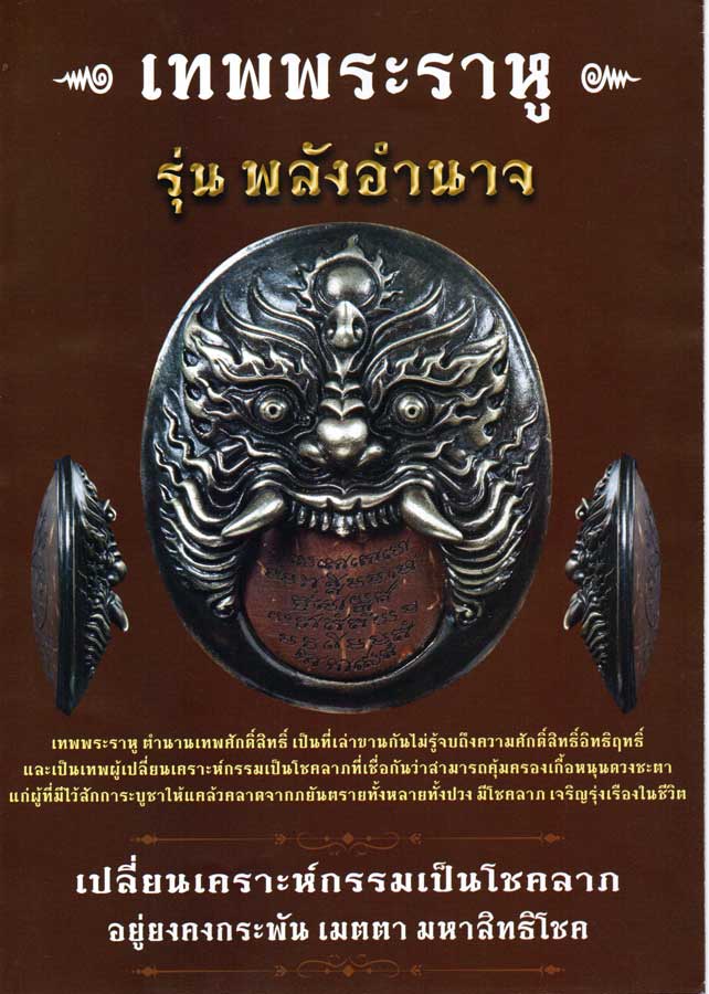 เหรียญเสมาพระราหู ฉลุลายยกองค์ หลังพระคาถาพระราหูสุริยประภา จันทรประภา พระอาทิตย์ พระจันทร์ สูง 4.5 ซม.