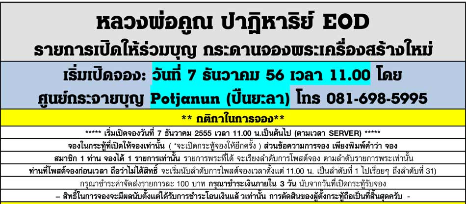 รอบแรก เวลา 11.00 น ตามเวลา server โดยศูนย์กระจายบุญ Potjanun พี่ปืนยะลา