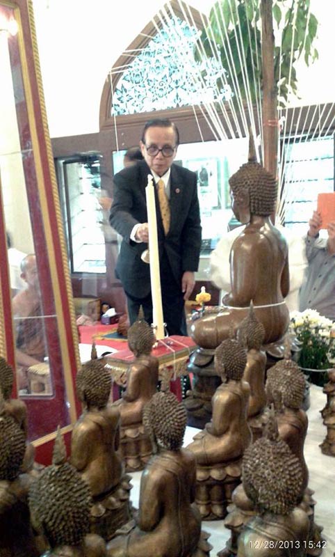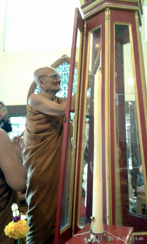 วาระที่ 1. หลวง ปู่หนูเพชร ปัญญาวุโธ วัดป่าภูมิพิทักษ์ อำเภอสว่างแดนดิน จังหวัดสกลนคร ประธานฝ่ายสงฆ์ และท่านสวัสดิ์ โชติพานิช อดีตประธานศาลฎีกา ประธานฝ่ายฆารวาส จุดเทียนชัย และเทียนมหาฤกษ์ พิธีพุทธาภิเศกมหาบูรพาจารย์ 64 ปี รูปหล่อบูชาหลวงปู่มั่น ภูริทัตโต ของคณะผู้พิพากษาหัวหน้าศาล สว่างแดนดิน และพระบูชาจำลองหลวงพ่อองค์แสนพิมพ์โบราณ ของคณะชมรมพระเคริ่องไทสกล และเหรียญเศรษฐีหลวงปู่หนูเพชร ปัญญาวุโธ ของคณะศิษย์อำเภอสว่างแดนดินและศิษย์จังหวัดสกลนคร ณ วัดป่าสุทธาวาส 28 ธันวาคม 2556 โดยพระเถระ 25 รูป เวลา 15.00 น - 18.00 น