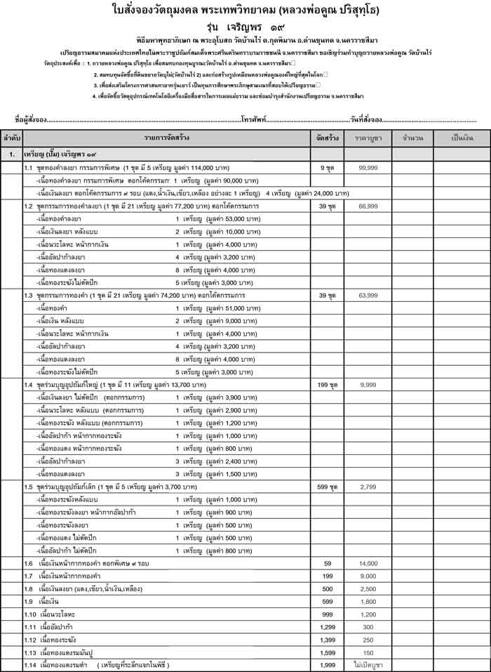 | หัวข้อกระทู้ : กระทู้ดาวน์โหลด.....ใบสั่งจองวัตถุมงคลหลวงพ่อคูณ รุ่น เจริญพร ๑๙ |