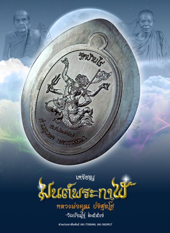 | หัวข้อกระทู้ : >>> พิธีพุทธาภิเษก "เหรียญมนต์พระกาฬ" หลวงพ่อคูณ ปริสุทฺโธ (วันพรุ่งนี้) << |