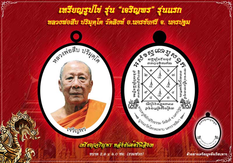 ภาพล่าง : เจริญพร หลังยันต์ตรีนิสิงเห