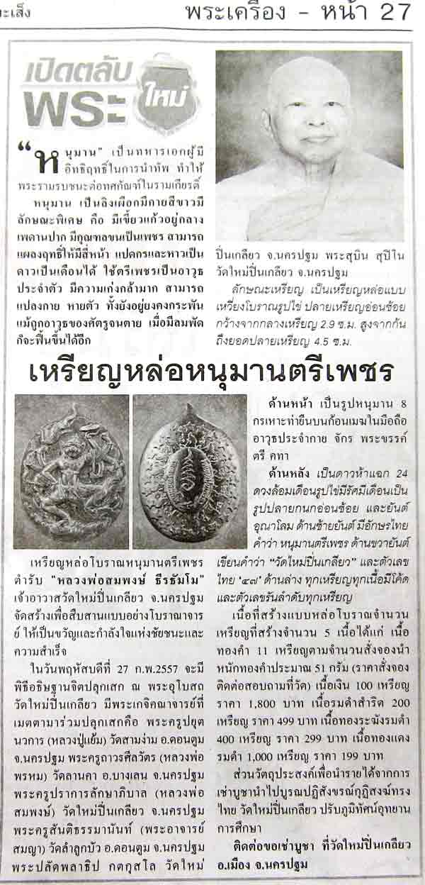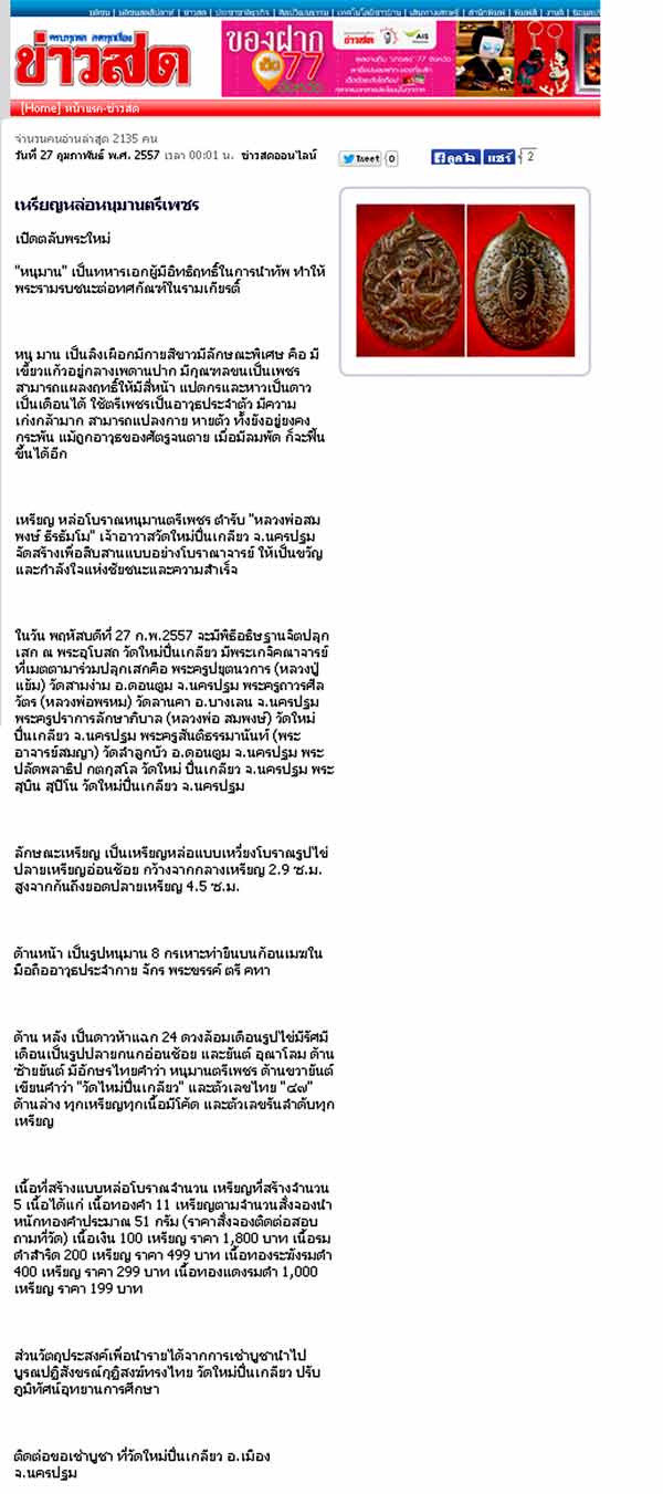 | หัวข้อกระทู้ : หนุมานตรีเพชรวัดใหม่ปิ่นเกลียว..กับหนังสือพิมพ์ข่าวสด&ข่าวสดออนไลน์ |