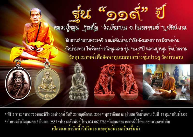 | หัวข้อกระทู้ : => แจ้งรายละเอียดและความคืบหน้า วัตถุมงคล รุ่น 119 ปี ลป.หมุน วัดบ้านจาน |