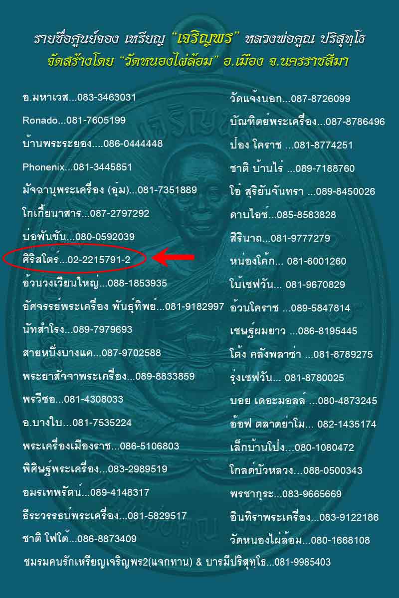 | หัวข้อกระทู้ : **ประกาศสำหรับท่านที่โทรมาลงชื่อกับศิริสโตร์ จองเหรียญลพ.คูณ รุ่น เจริญพร วัดหนองไผ่ล้อม** |