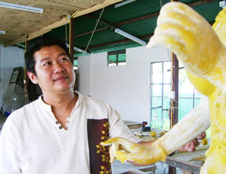 ในกระทู้นี้...จึงได้นำงานต้นแบบพร้อมภาพร่างมาลงให้ทุกท่านได้ชมไปพลางก่อนครับ..โดยงานต้นแบบที่เห็นในภาพ เป็นงานที่ "อาจารย์พิทักษ์" กำลังปั้นองค์ท้าวมหาพรหม ในขนาดบูชา หน้าตัก ๕ " ครับ...ซึ่ง มีความคืบหน้าประมาณ ๒๐% แต่เพราะถูกสอบถามมามาก จึง...ได้นำมาให้ได้ชมกันก่อนครับ.. |