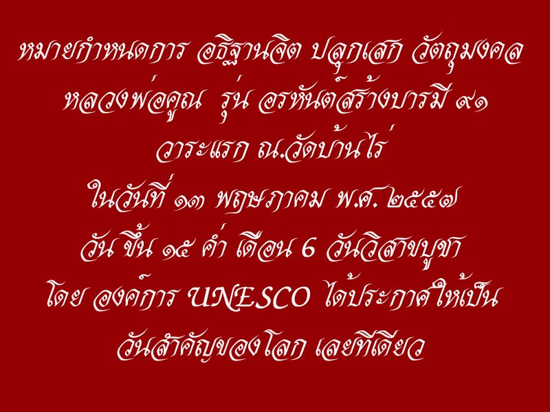 วาระสอง จะแจ้งหมายกำหนดการอีกครั้งภายในเดือนพค.57 อธิฐานจิตปลุกเสกเดี่ยว โดยหลวงพ่อคูณ ปริสุทฺโธ ณ.วัดบ้านไร่