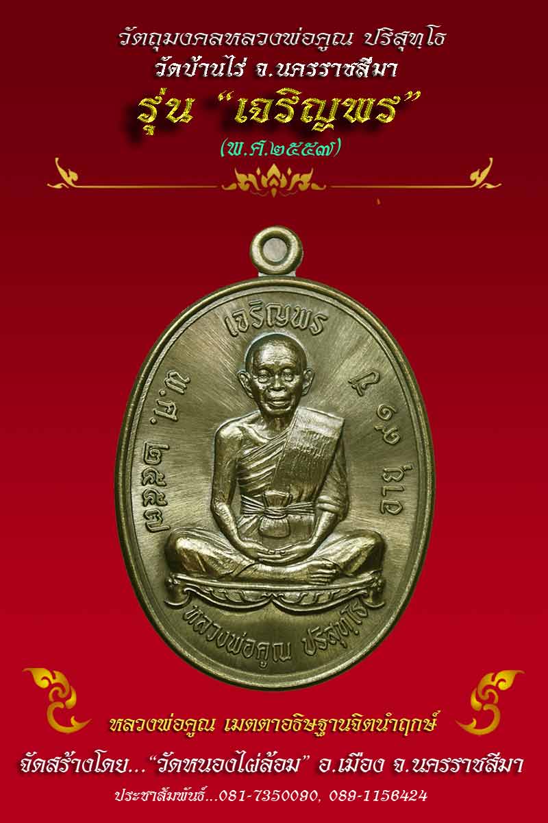 นับเป็นครั้งที่ 2 ที่หลวงพ่อคูณ ปริสุทฺโธ ท่านเมตตาอธิษฐานจิตให้กับ "เหรียญเจริญพร" วัดหนองไผ่ล้อม