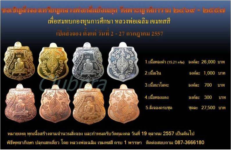 ขอเชิญสั่งจองเหรียญหลวงพ่อกลั่นย้อนยุค วัดพระญาติการาม อยุธยา๒๔๖๙ - ๒๕๕๗ เพื่อสมท กองทุนการศึกษา หลวงพ่อเฉลิม เขมทสสี
