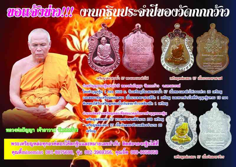 ผมขอแรงพี่ๆน้องๆทุกท่านร่วมบุญกฐินตามกำลังศรัทธากับวัดเล็กๆกับหลวงพ่อที่คอยช่วยเหลือญาติโยม กับเกจิสายนครสวรรค์ ที่สืบทอดตกทอดวิชากันมา จากหลวงพ่อเดิม หลวงพ่อรุ่ง หลวงพ่อโอด สู่หลวงพ่อปัญญา เจ้าอาวาสวัดกกกว้าว