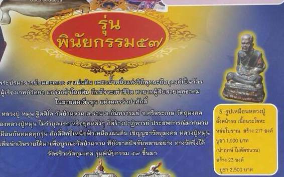 - เนื้อทองผสมชนวน สร้าง 19 องค์ บูชา 30,000 บาท