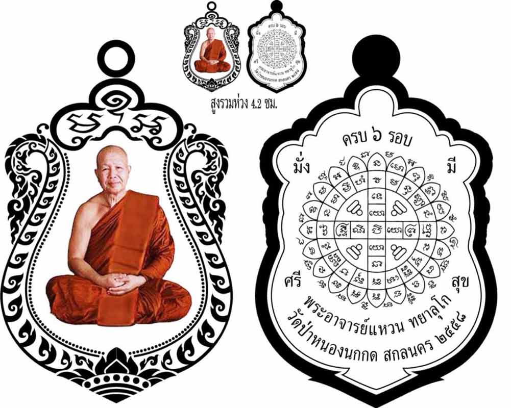 วัตถุประสงค์สมทบทุนรวมสร้างศาลาการเปรียญ วัดป่าหนองนกกด บ้านหนองนกกด อำเภอพังโคน จังหวัดสกลนคร เหรียญออกในวาระครบ 6 รอบ 14 กุมภาพันธ์ พ.ศ.2558 แกะบล็อกโดยช่างหลอด วิระศักดิ์ แจ่มใส