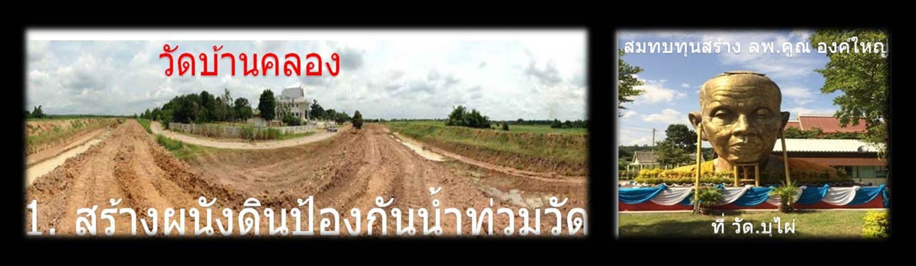 2. สร้างผนังดิน เพื่อป้องกันน้ำท่วมวัด อย่างเช่นปีที่ผ่านมา ณ.ตอนนี้หลวงพ่อ ได้แจ้งญาติโยมที่จะเป็นเจ้าภาพงานกฐินปีนี้ว่า เงินถวายส่วนหนึ่ง ต้องนำไปจ่ายค่ารถแทรกเตอร์ย้อนหลัง ที่ทางหลวงพ่อ ได้แจ้งให้มาสร้างผนังดินดังกล่าวล่วงหน้าแล้ว และ