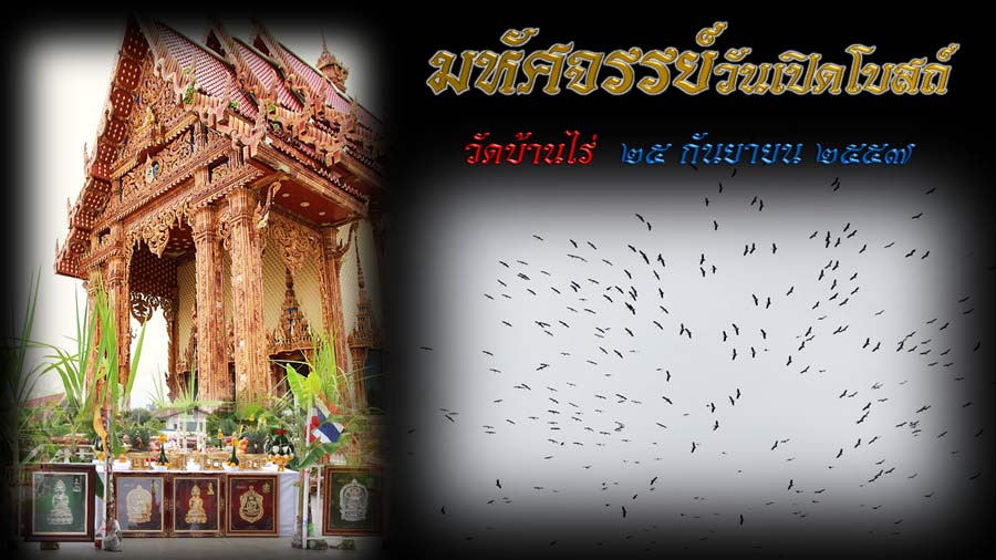 หลังจากที่ได้ประชาสัมพันธ์ข่าวการเปิดโบสถ์วัดบ้านไร่ เพื่อประกอบพิธีพุทธาภิเษกพระกริ่งญาณวิทยาคม รุ่น ๒ ,เหรียญนั่งพานชนะมาร รุ่น ๒(วัดสร้าง) และเหรียญเสมาวัดปรก รุ่น ๒ เมื่อวันพฤหัสบดีที่ 25 กันยายน 2557 ที่ผ่านมา โดยมีเรื่องราวเหตุการณ์ที่น่าอัศจรรย์เป็นครั้งแรกที่วัดบ้านไร่ เพราะที่ผ่านมาได้มีการปลุกเสกวัตถุมงคลหลวงพ่อคูณมาแล้วนับสิบๆรุ่น ยังไม่เคยมีแบบนี้มาก่อน นั่นคือ มีฝูงนกปากห่างได้มารวมตัวกันบินวนอยู่เหนืออุโบสถวัดบ้านไร่นับร้อยๆตัวเป็นเวลานาน ในขณะประกอบพิธีพุทธาภิเษกอยู่ภายในอุโบสถ ซึ่งสร้างความตื่นเต้นให้แก่ประชาชนที่มาร่วมพิธีกว่า 3,000 คนเป็นอย่างมาก